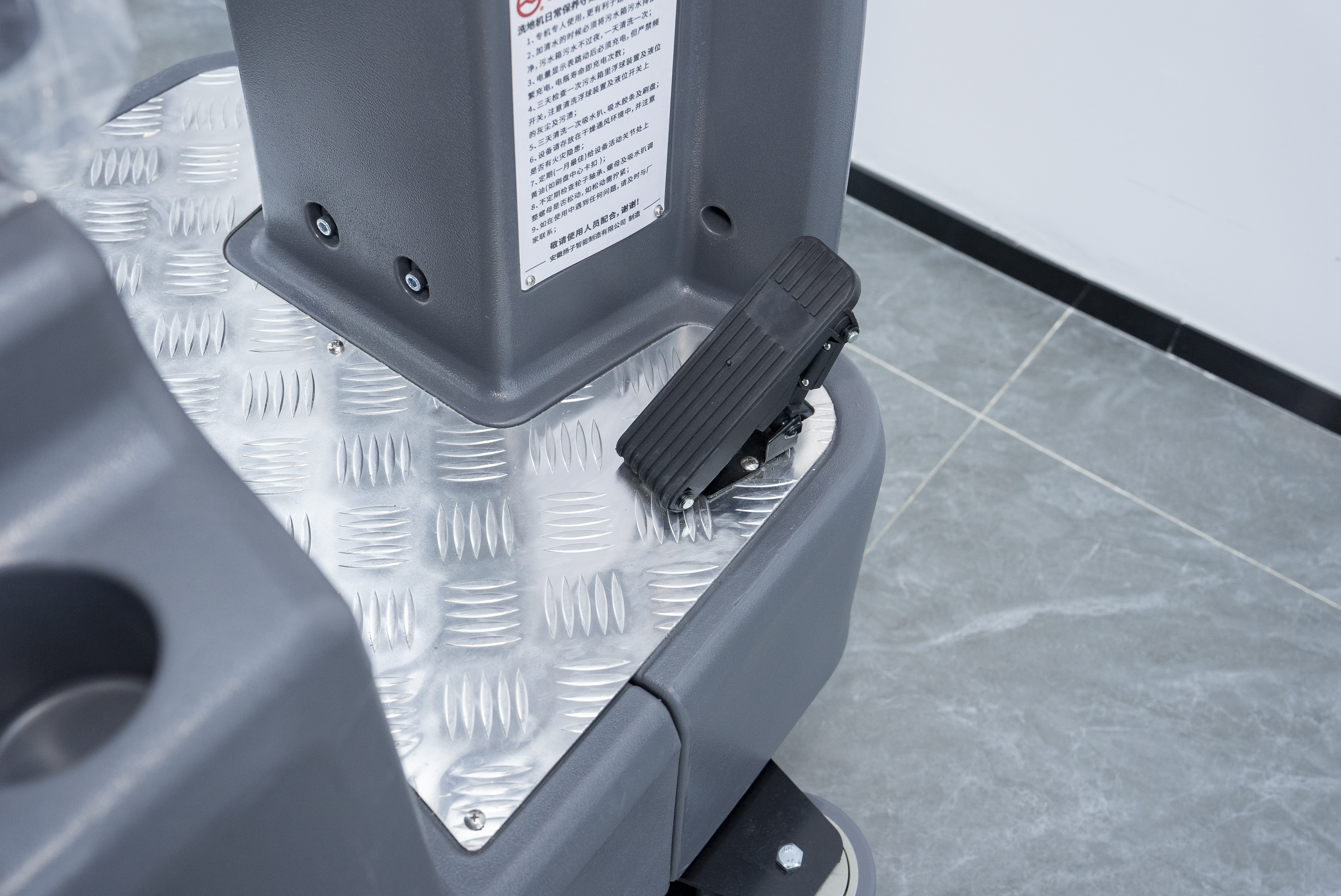 - 適配性:免維護款運維便捷,續(xù)航實測4.5小時,搭配160L大容量清水箱,中途補水即可完成全域清潔,無需頻繁充電;駕駛操作簡單易上手,配備智能控制面板,操作人員經(jīng)簡單培訓即可上崗,貼合天臺總部原有洗地車操作習慣;機身采用加厚底盤,搭配適配金剛砂地坪的耐磨刷盤,不刮傷、不磨損地面,運行平穩(wěn)無噪音,適配廠房狹窄通道及設備周邊清潔,爬坡度達15度,適配廠房不同區(qū)域地形。