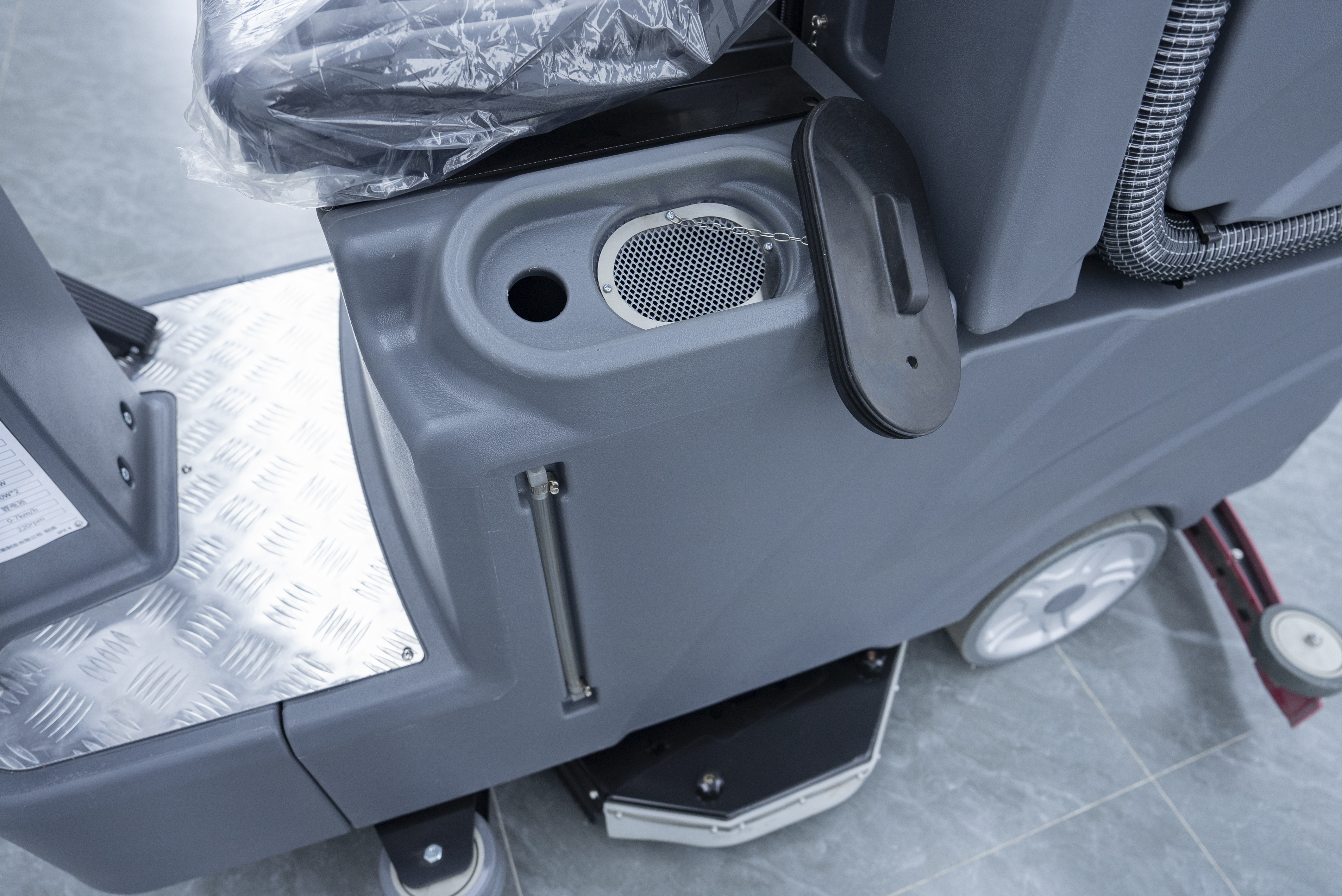 采購背景:新能源熱管理系統(tǒng)工廠廠房,地面為金剛砂耐磨地坪(適配工業(yè)廠房重型作業(yè)需求),客戶為天臺總部派駐人員,前期咨詢駕駛式洗地機時,同步問詢天臺總部原有采購洗地車的價格作為參考,核心需求為適配廠房大面積清潔,解決人工清潔效率低、地面粉塵、設備污漬難清理、保潔勞動強度大的痛點,兼顧設備免維護、易操作、耐用性強的特性。